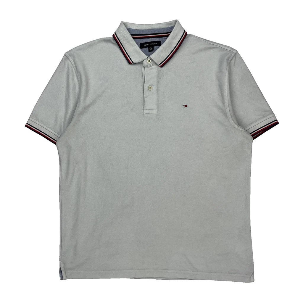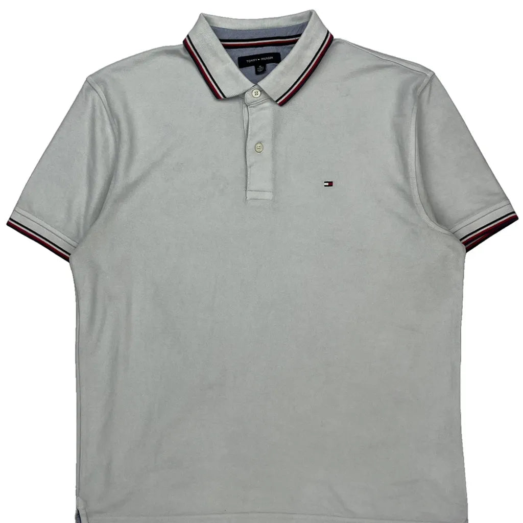 Tommy Hilfiger Striped Polo Shirt - XL White Cotton