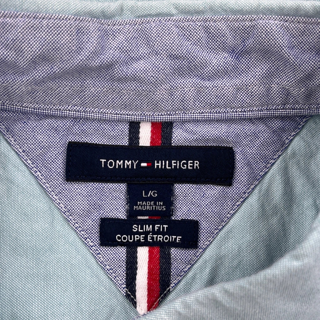 Tommy Hilfiger Slim Fit Shirt - Large Green Cotton
