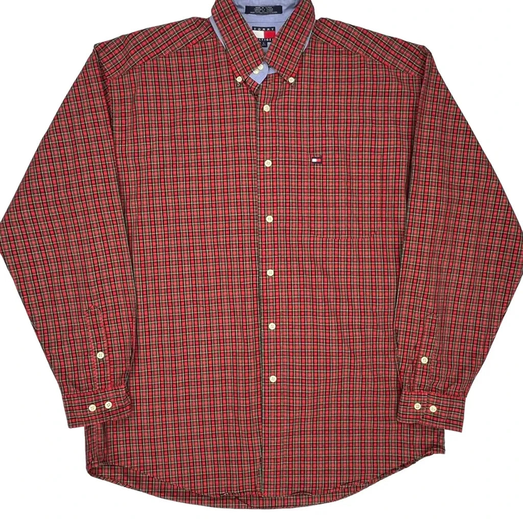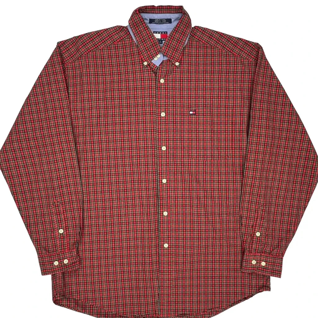 Tommy Hilfiger Checked Shirt - Large Green Cotton