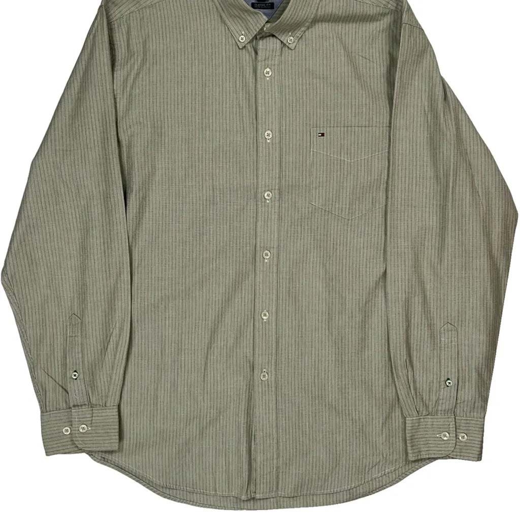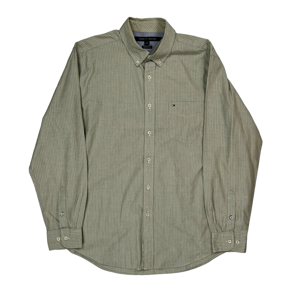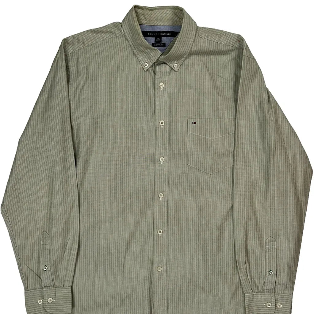 Tommy Hilfiger Striped Shirt - Large Green Cotton
