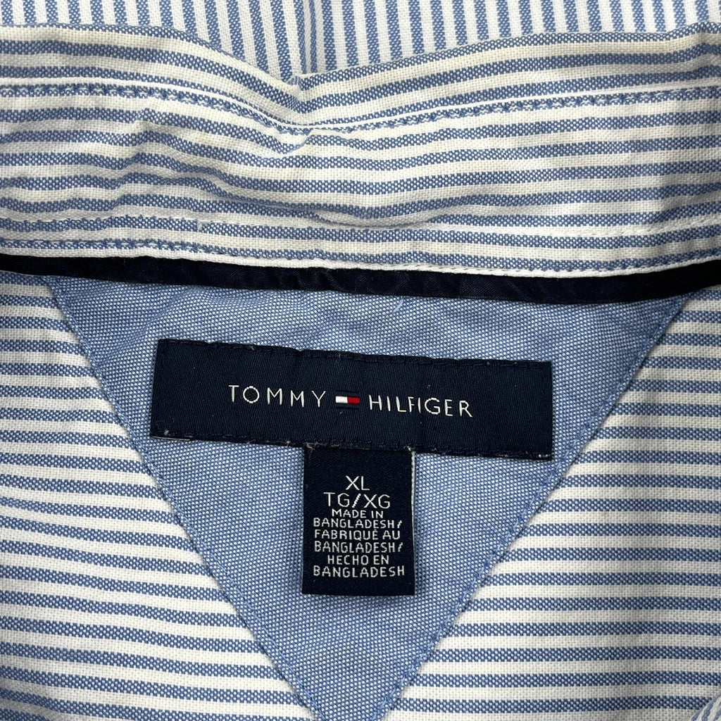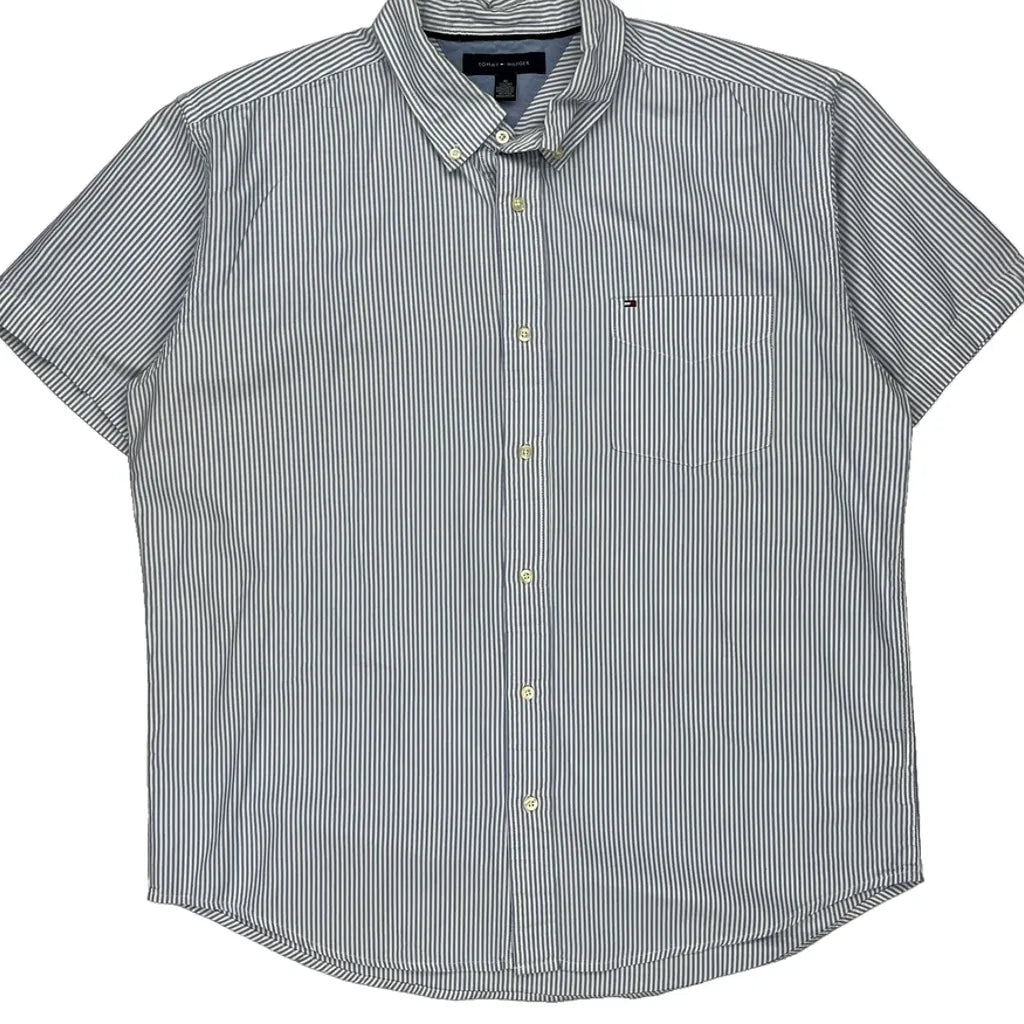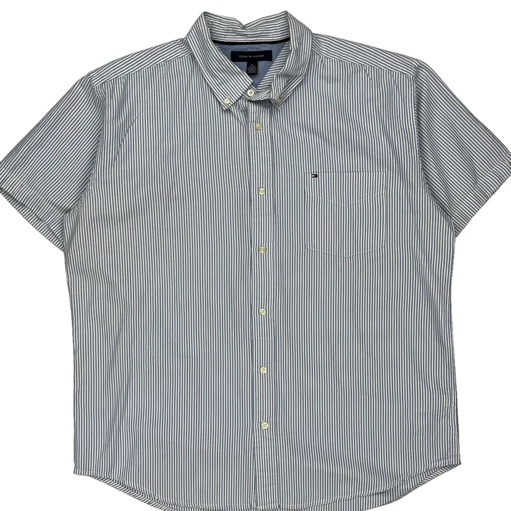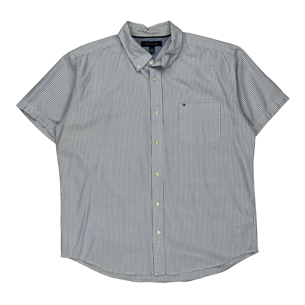 Tommy Hilfiger Striped Short Sleeve Shirt - XL Blue Cotton