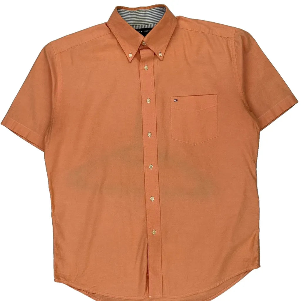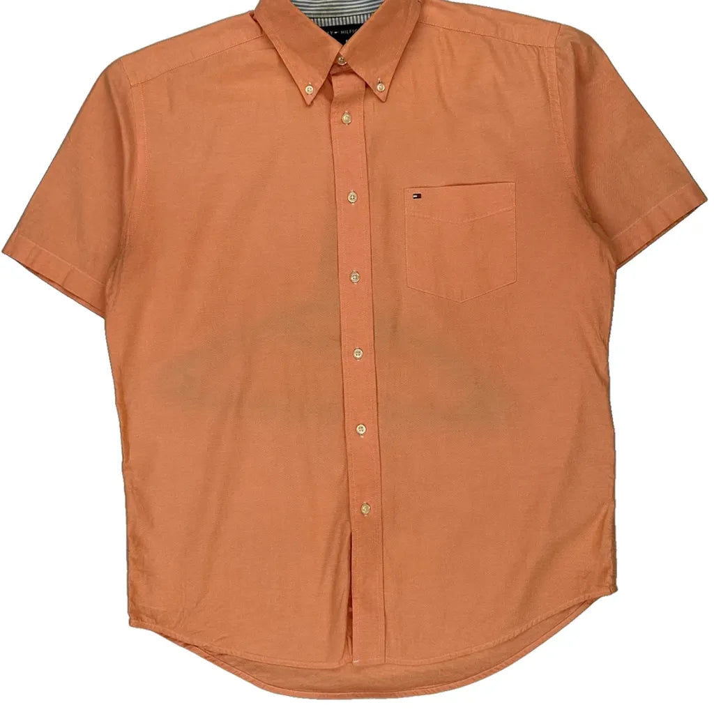 Tommy Hilfiger Short Sleeve Shirt - Medium Orange Cotton
