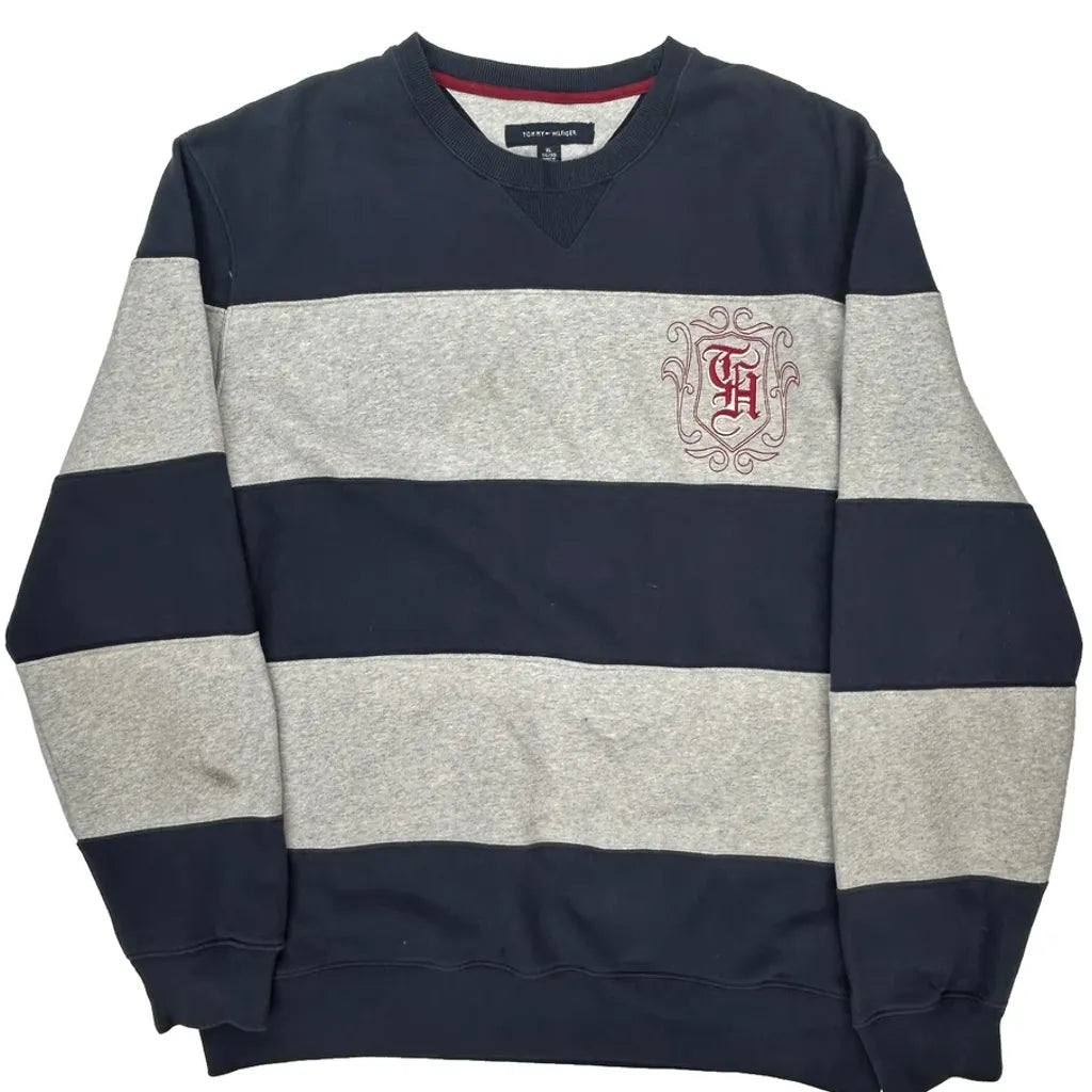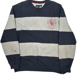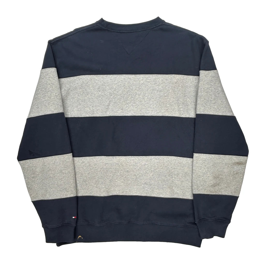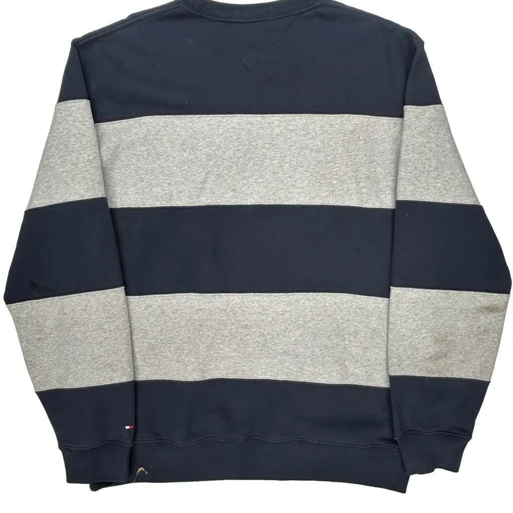 Tommy Hilfiger Striped Sweatshirt - XL Grey Cotton