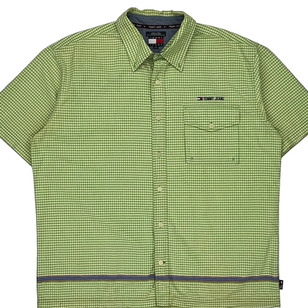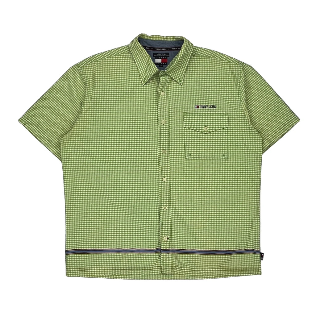 Tommy Jeans Checked Short Sleeve Shirt - XL Green Cotton