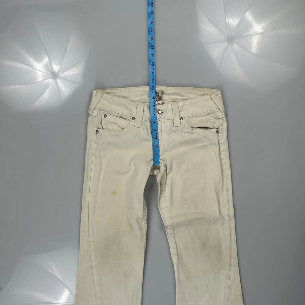 True Religion Boot Cut Jeans - 32W UK 10 Cream Cotton