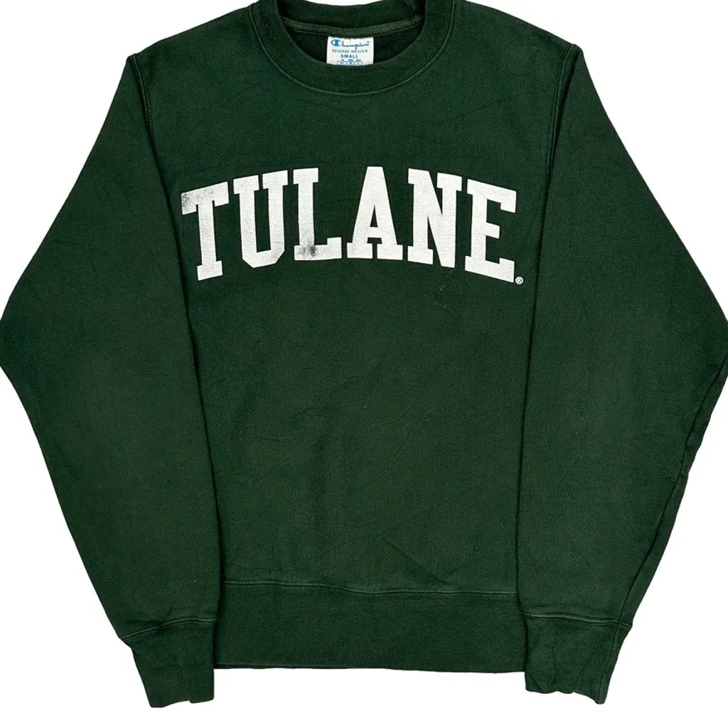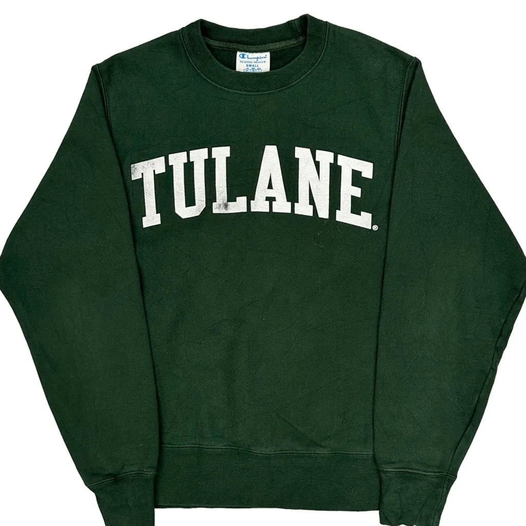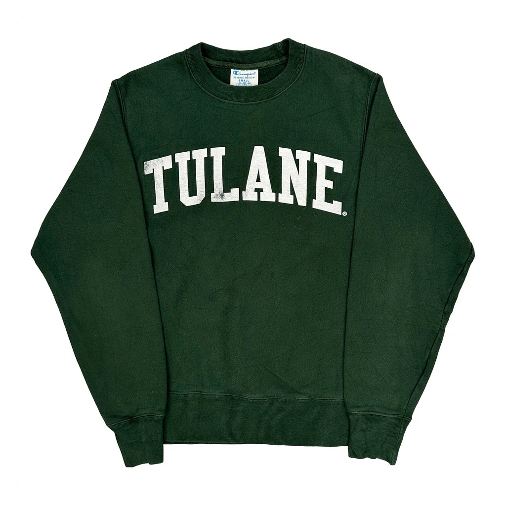 Tulane Champion College Sweatshirt - Small Green Cotton Blend