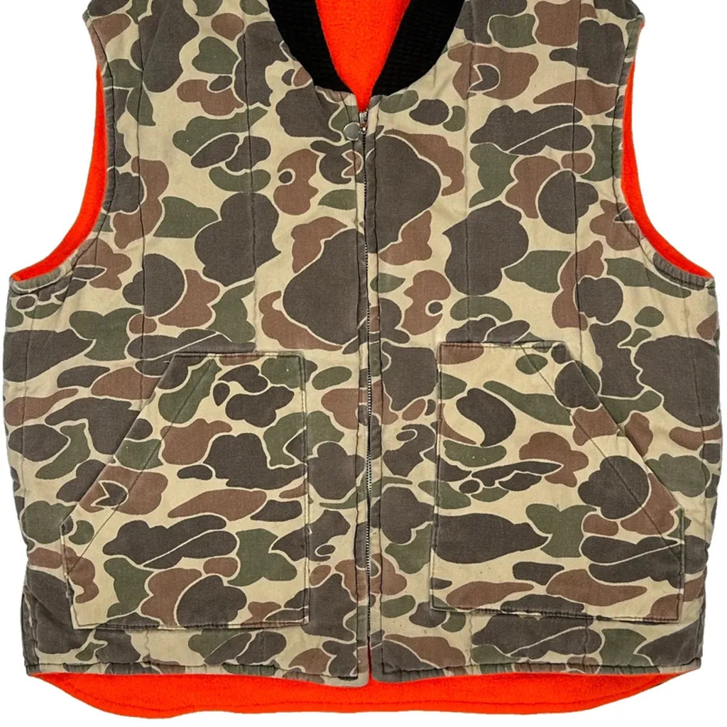 Reversible Camo And Orange Gilet With Zipper Closure