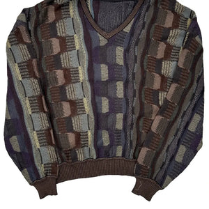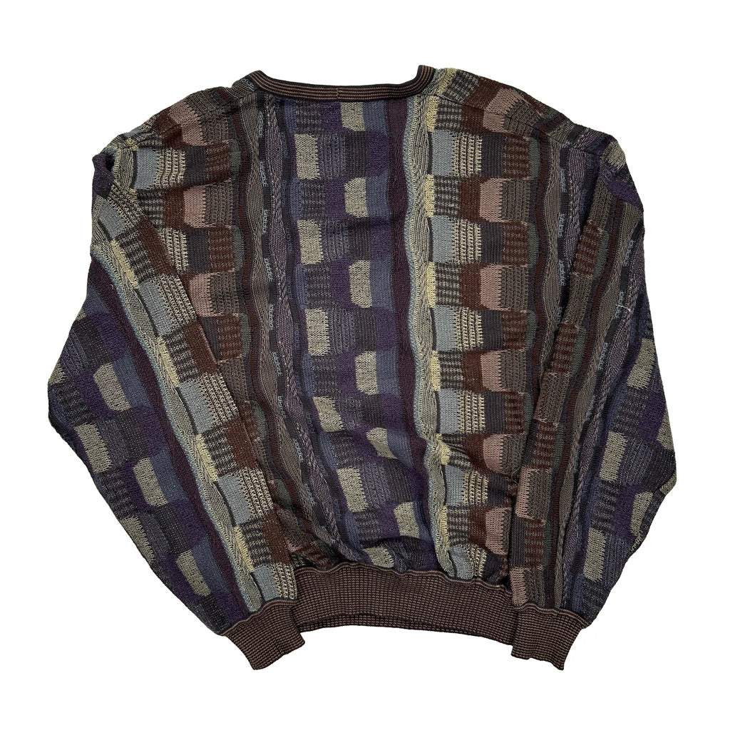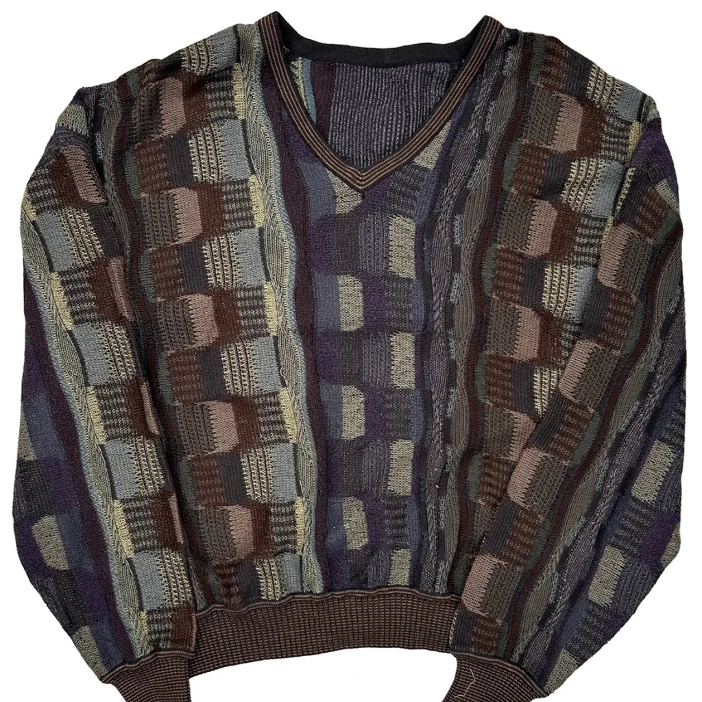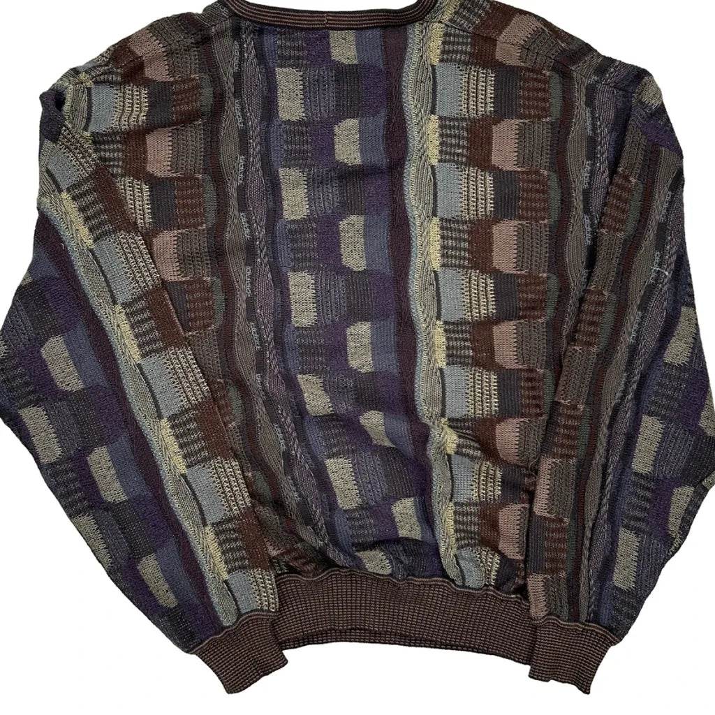 Vintage Coogi-Style Geometric Patterned Sweater