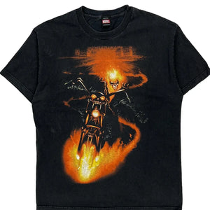 Graphic T-Shirt Featuring A Flaming Motorcycle Rider.