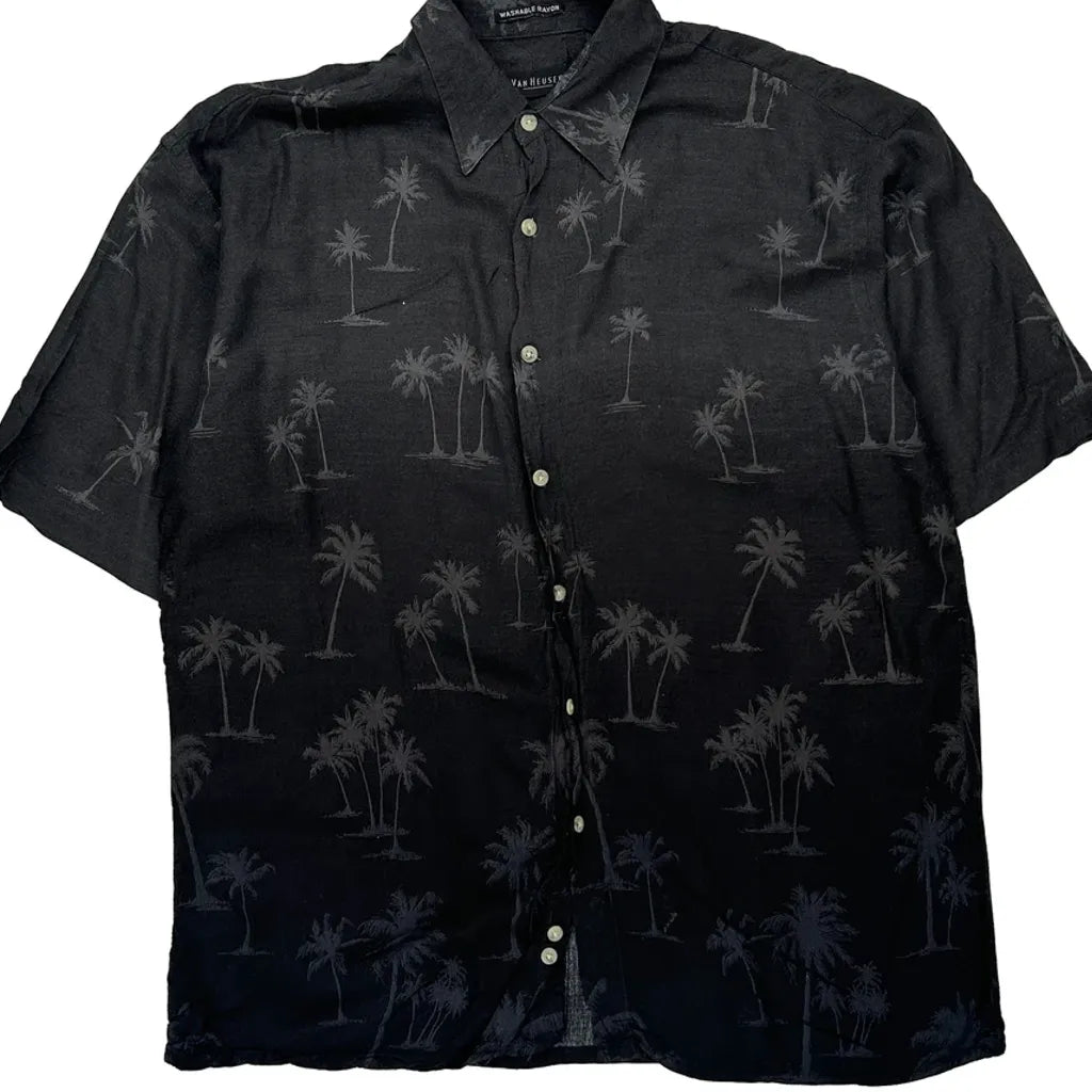 Van Heusen Hawaiian Shirt - Large Black Viscose