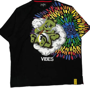 Black T-Shirt With Colorful Graphic And 'Vibes' Text
