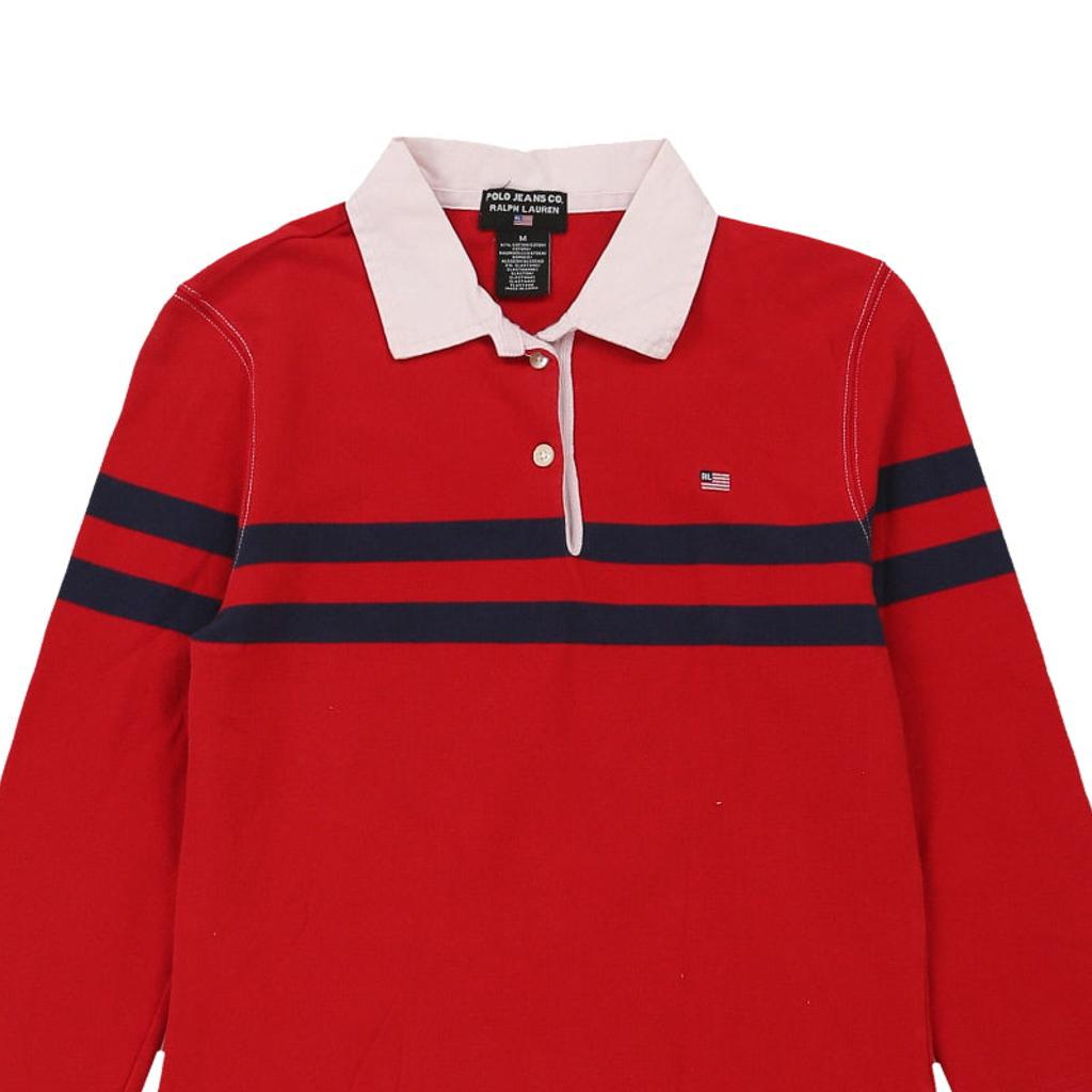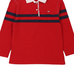 Age 8-9 Ralph Lauren Striped Rugby Shirt - Medium Red Cotton