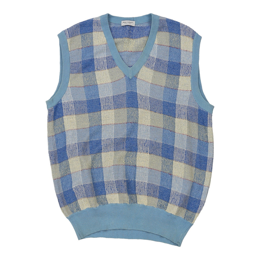 Alan Robert Checked Sweater Vest - Small Blue Cotton Blend