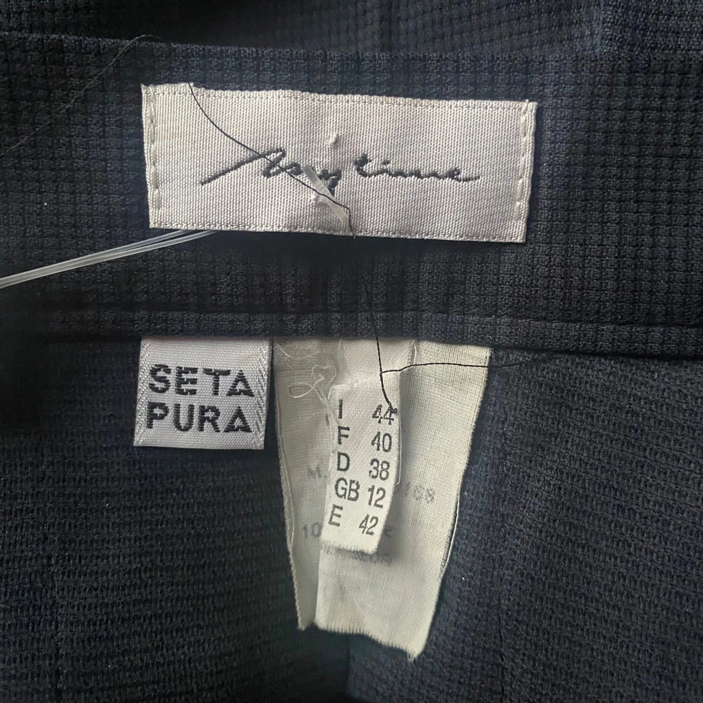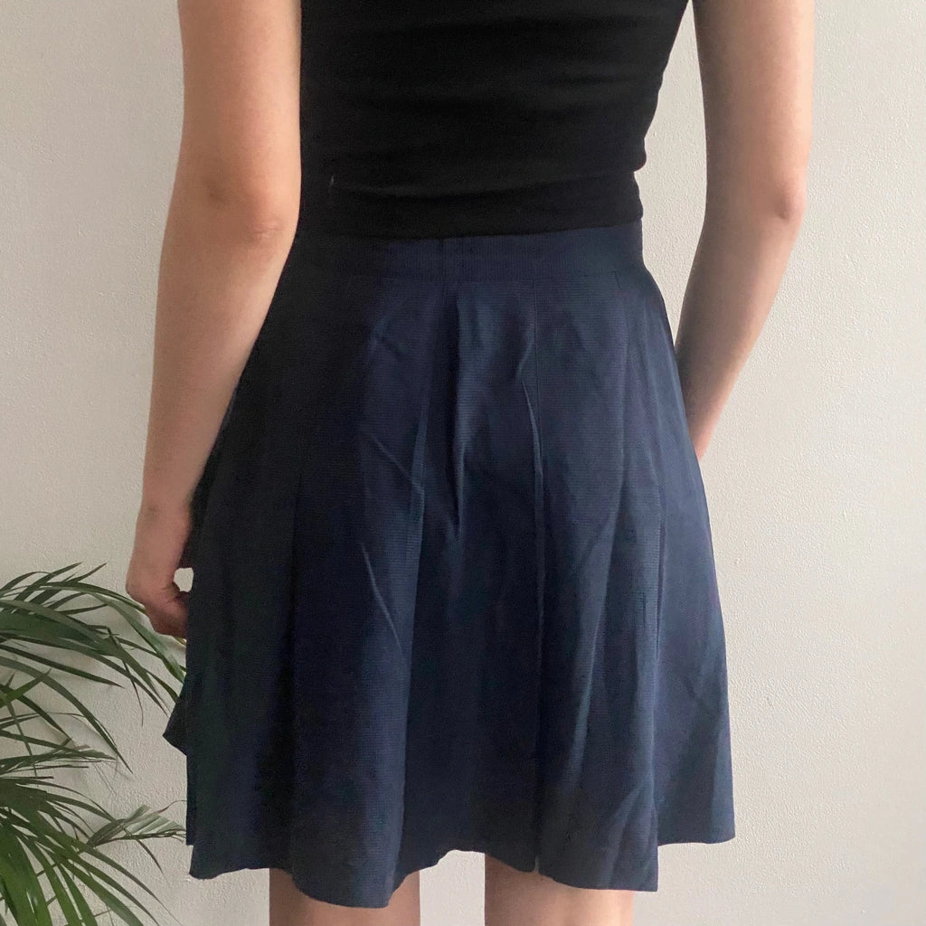 Any Time Checked Mini Skirt - 28W UK 8 Navy Silk
