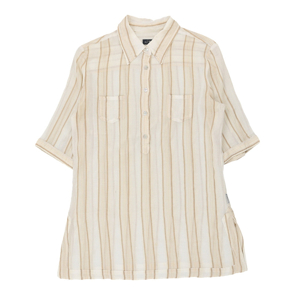 Armani Jeans Striped Short Sleeve Shirt - XL Beige Cotton