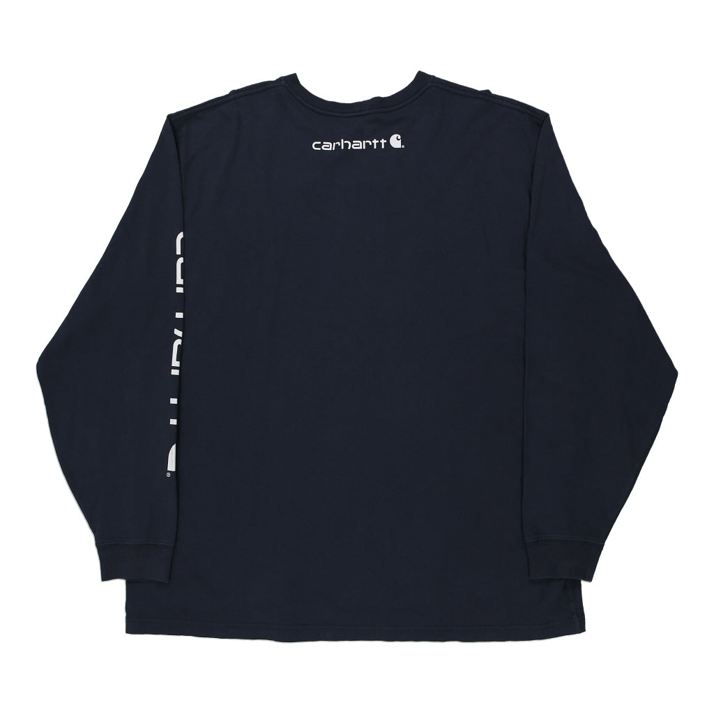 Carhartt Spellout Long Sleeve T-Shirt - XL Navy Cotton