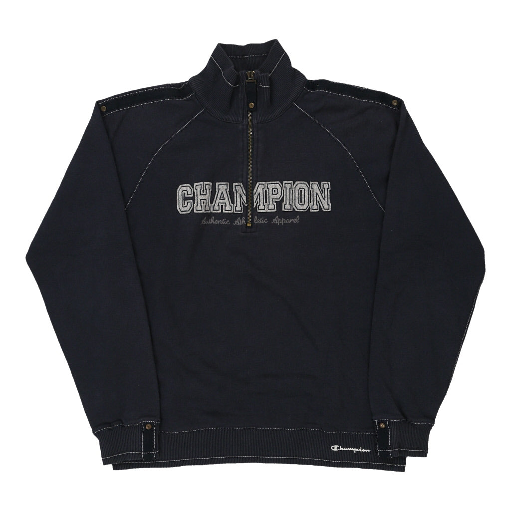 Champion Spellout 1/4 Zip - Medium Navy Cotton