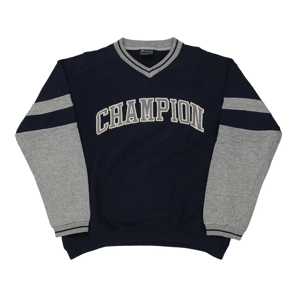Champion Spellout Sweatshirt - Large Navy Cotton