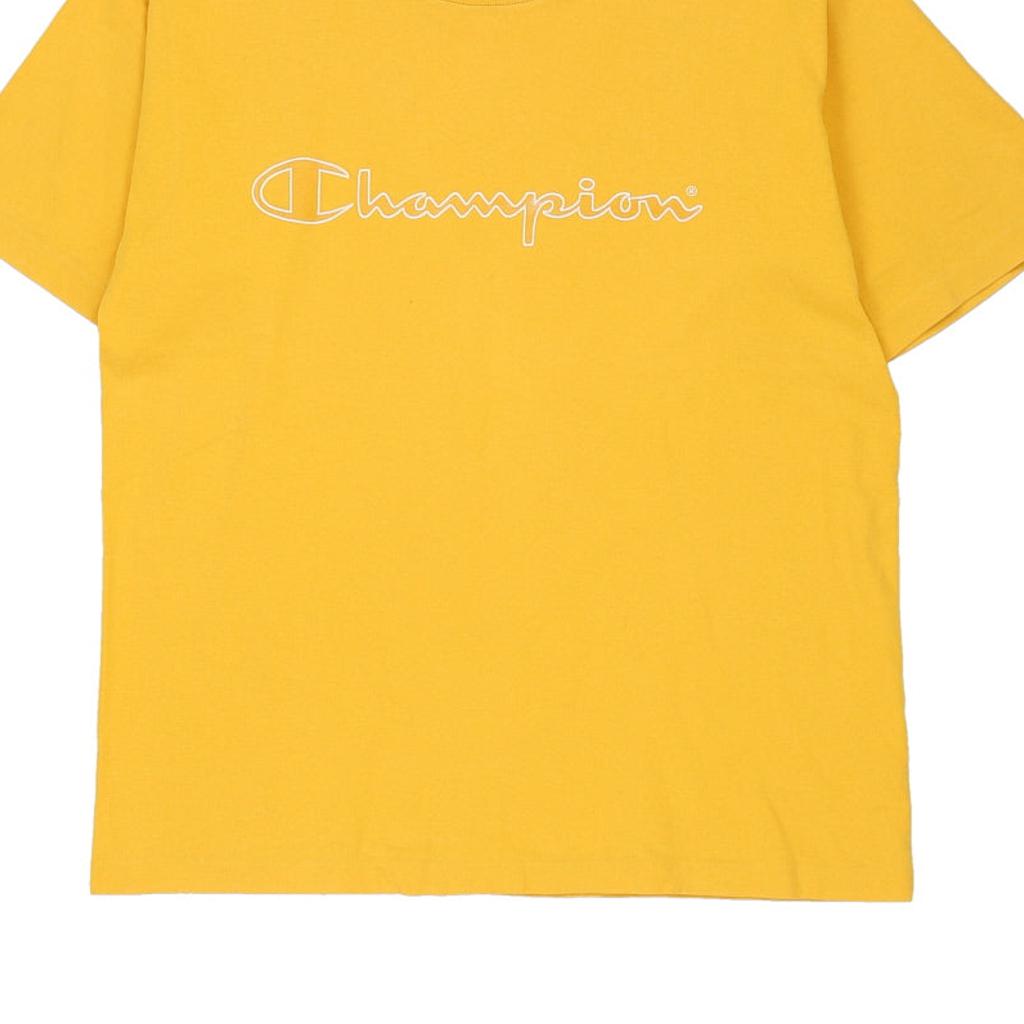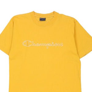 Champion Spellout T-Shirt - Small Yellow Cotton
