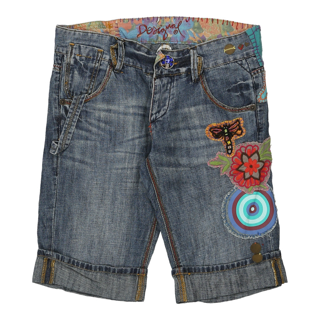Desigual Embroidered Denim Shorts - 32W UK 10 Blue Cotton