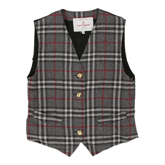 Junior Age 14 Laura Biagiotti Checked Waistcoat - Large Grey Wool Blend