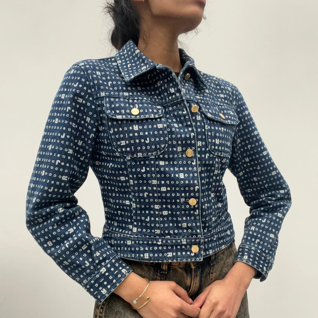 Roccobarocco Cropped Denim Jacket - Small Blue Cotton