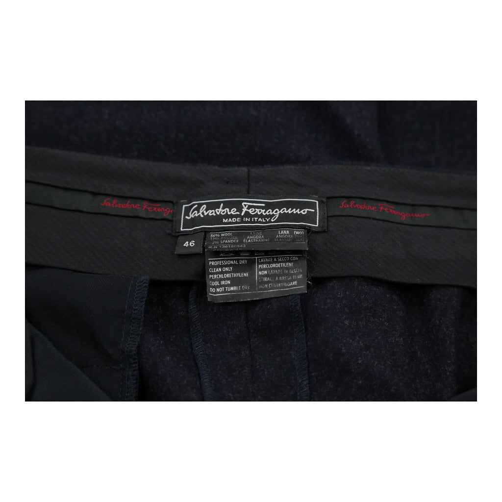 Salvatore Ferragamo Trousers - 35W UK 14 Navy Wool Blend