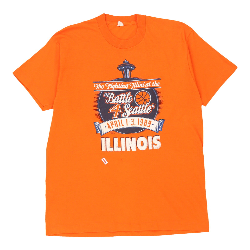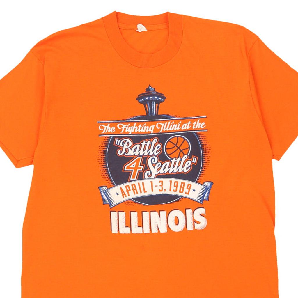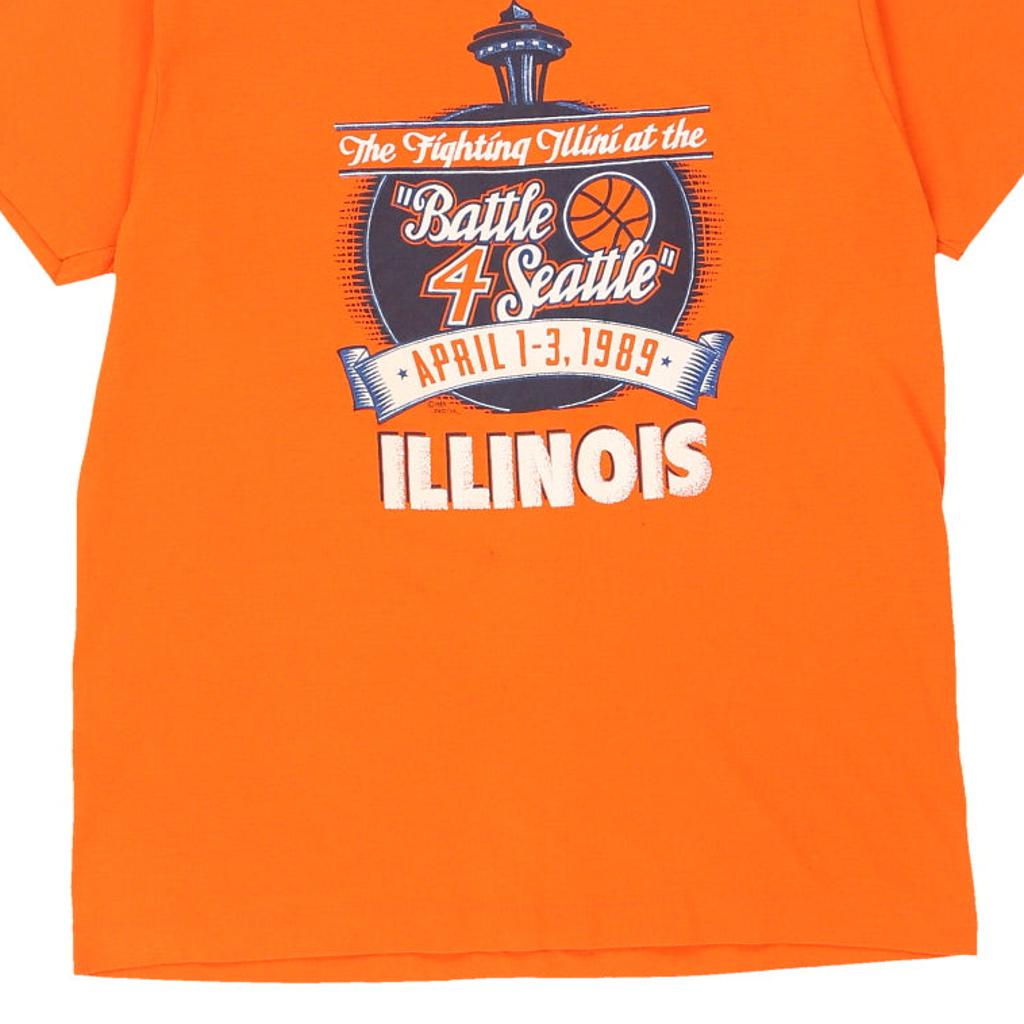 Single Stitch 1980s Fighting Illinois. Screen Stars College T-Shirt - Large Orange Cotton