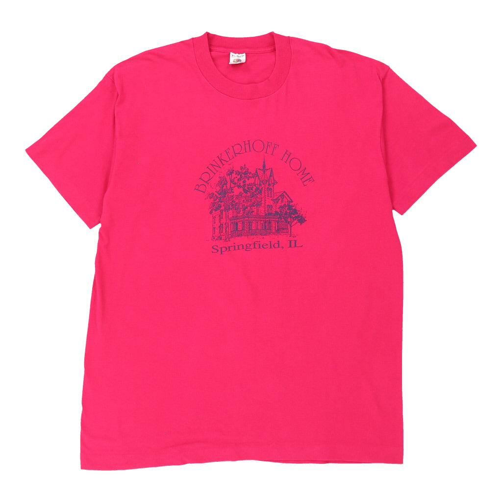 Single Stitch Brinkerhoff Home. Fruit Of The Loom Graphic T-Shirt - XL Pink Cotton