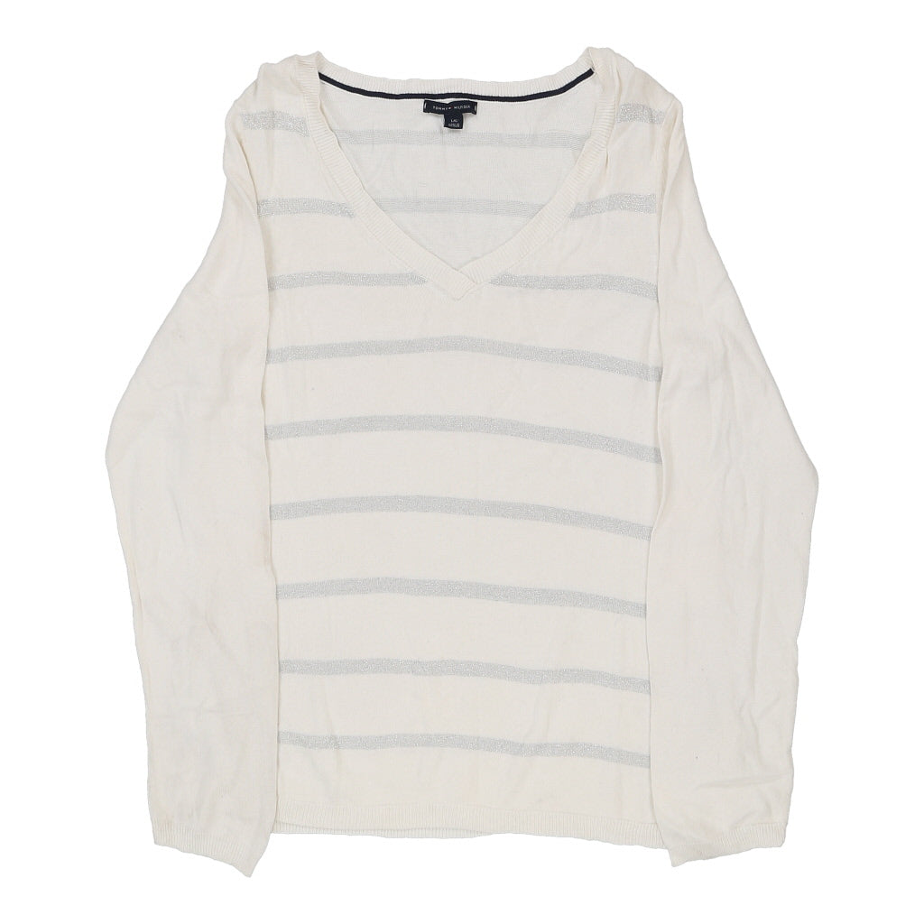 Tommy Hilfiger V-neck Jumper - Large Cream Cotton
