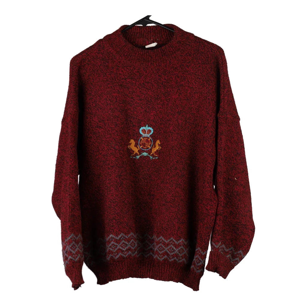 Unbranded Embroidered Jumper - XL Burgundy Wool