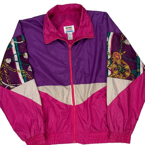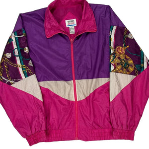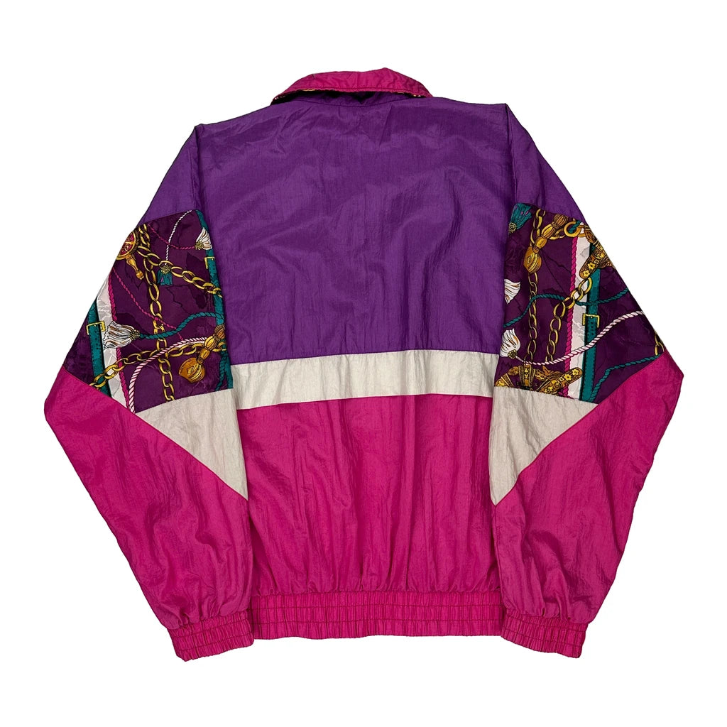 Colorful Vintage Windbreaker With Graphic Patterns On Sleeves.