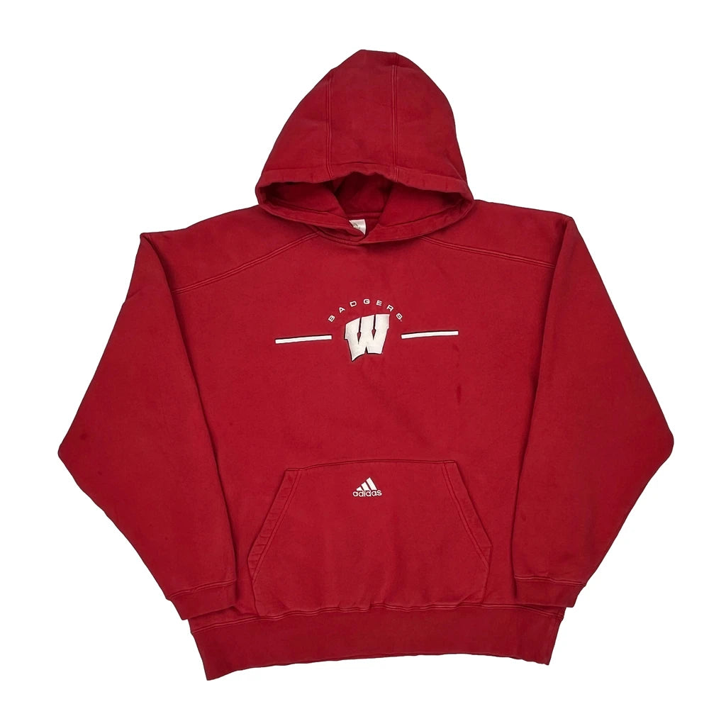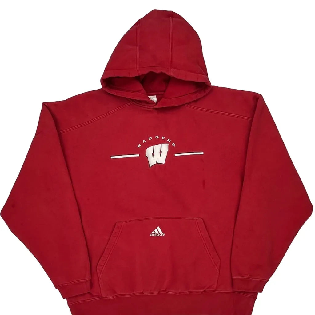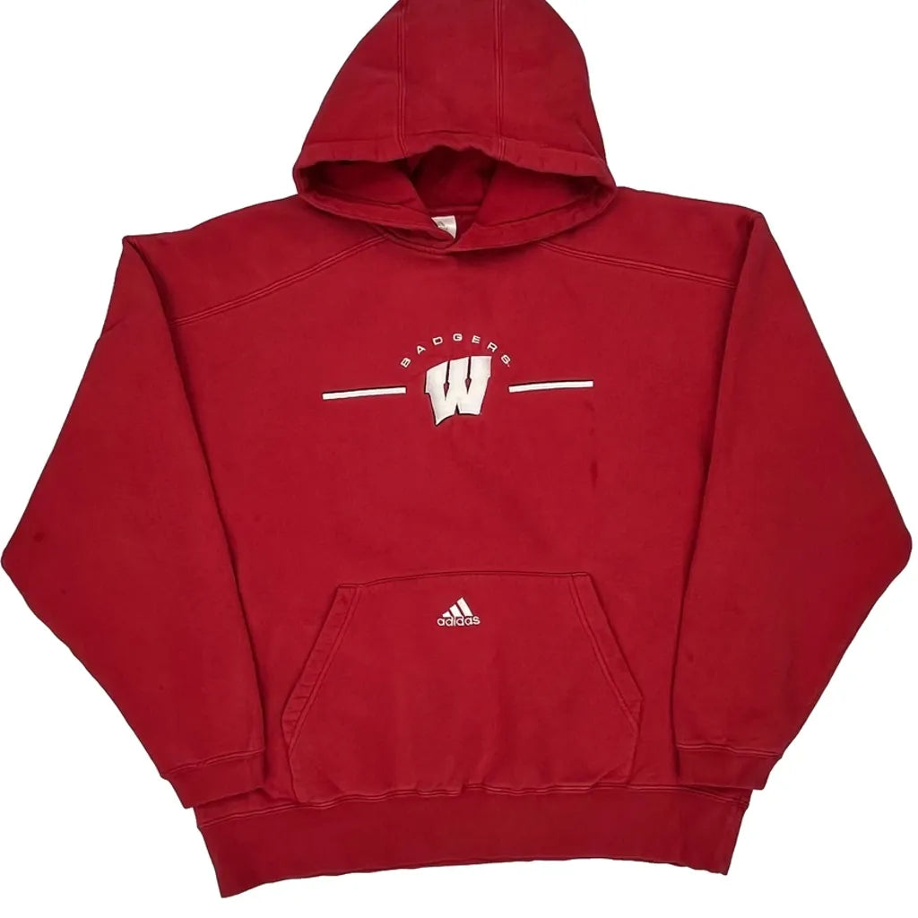 Wisconsin Badgers Adidas College Hoodie - Large Red Cotton