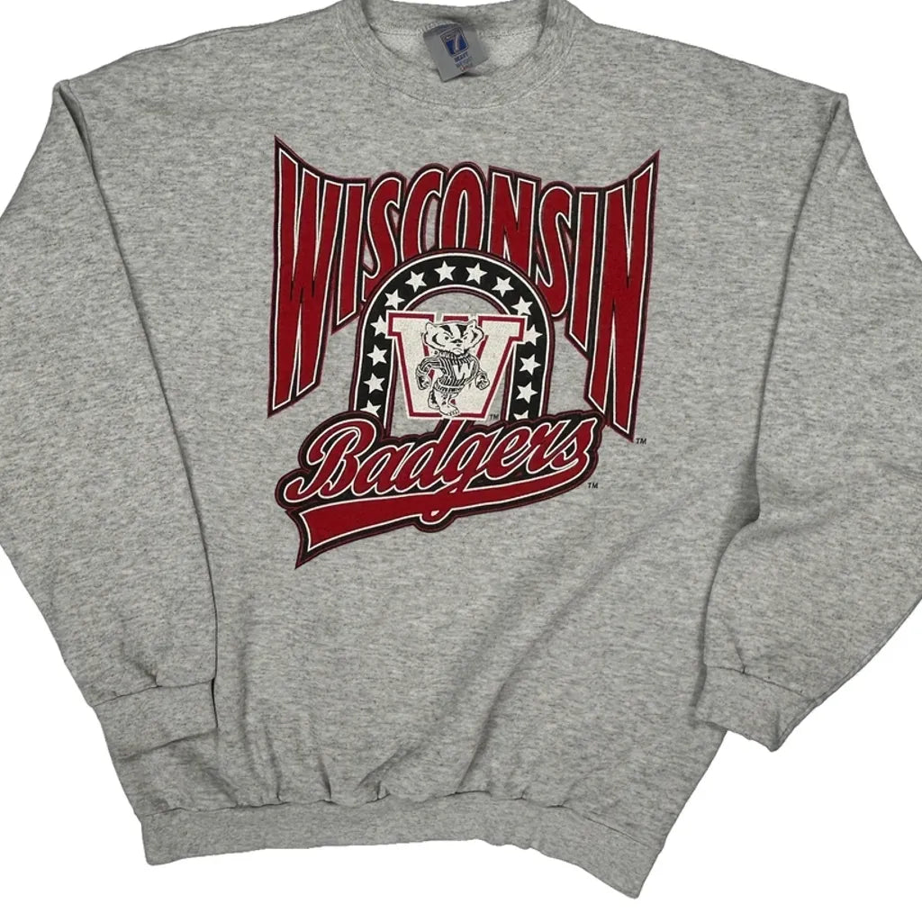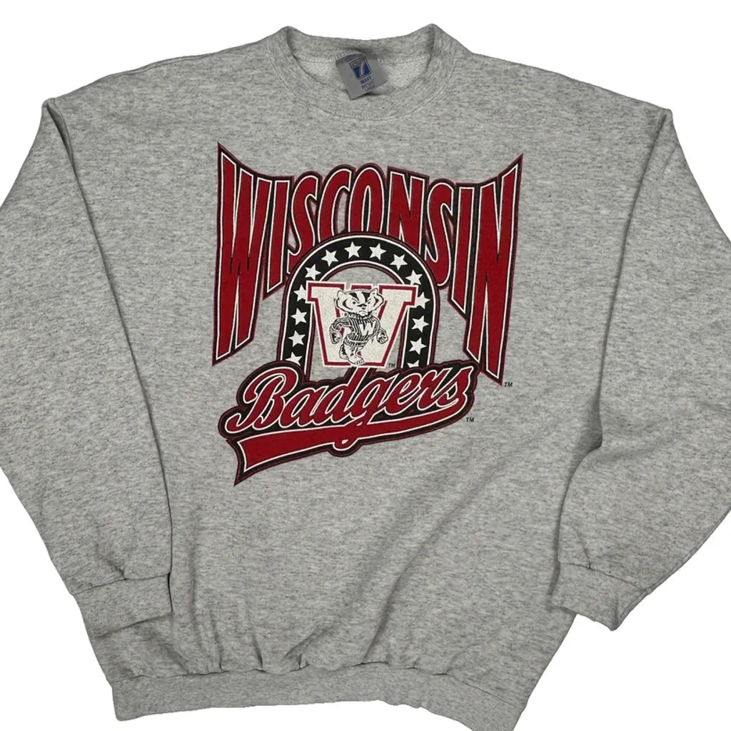 Wisconsin Badgers Logo Athletics College Sweatshirt - Large Grey Cotton
