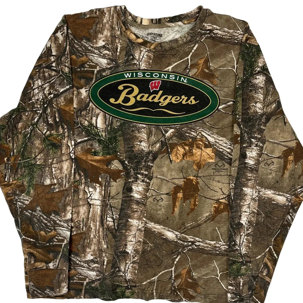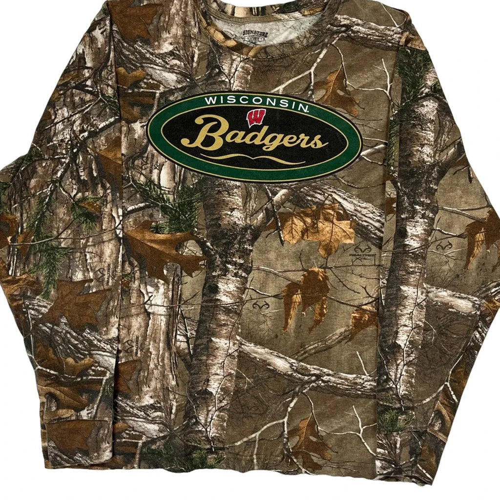Wisconsin Badgers Signature Camo Long Sleeve T-Shirt - Large Green Cotton