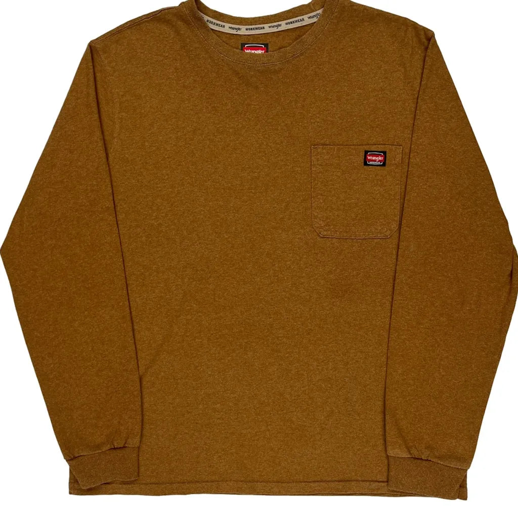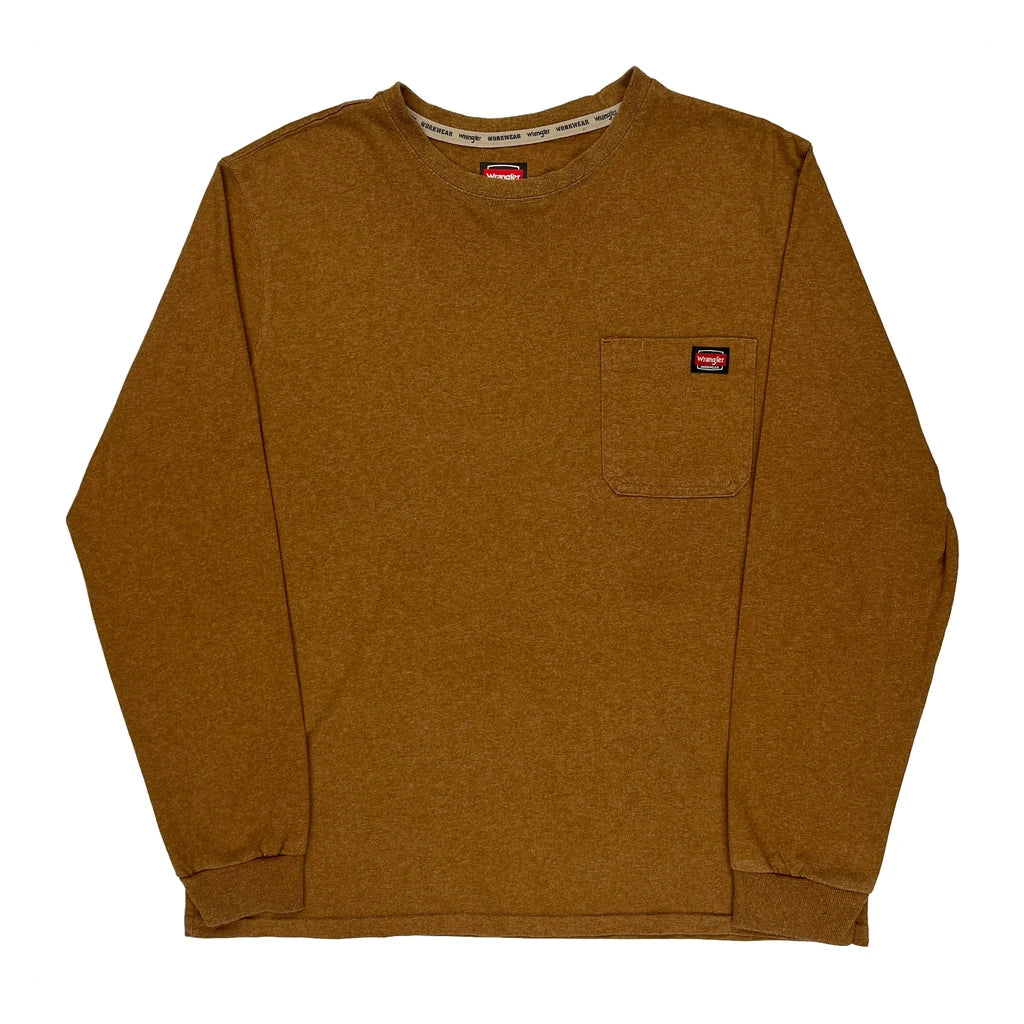 Workwear Wrangler Long Sleeve T-Shirt - Large Brown Cotton