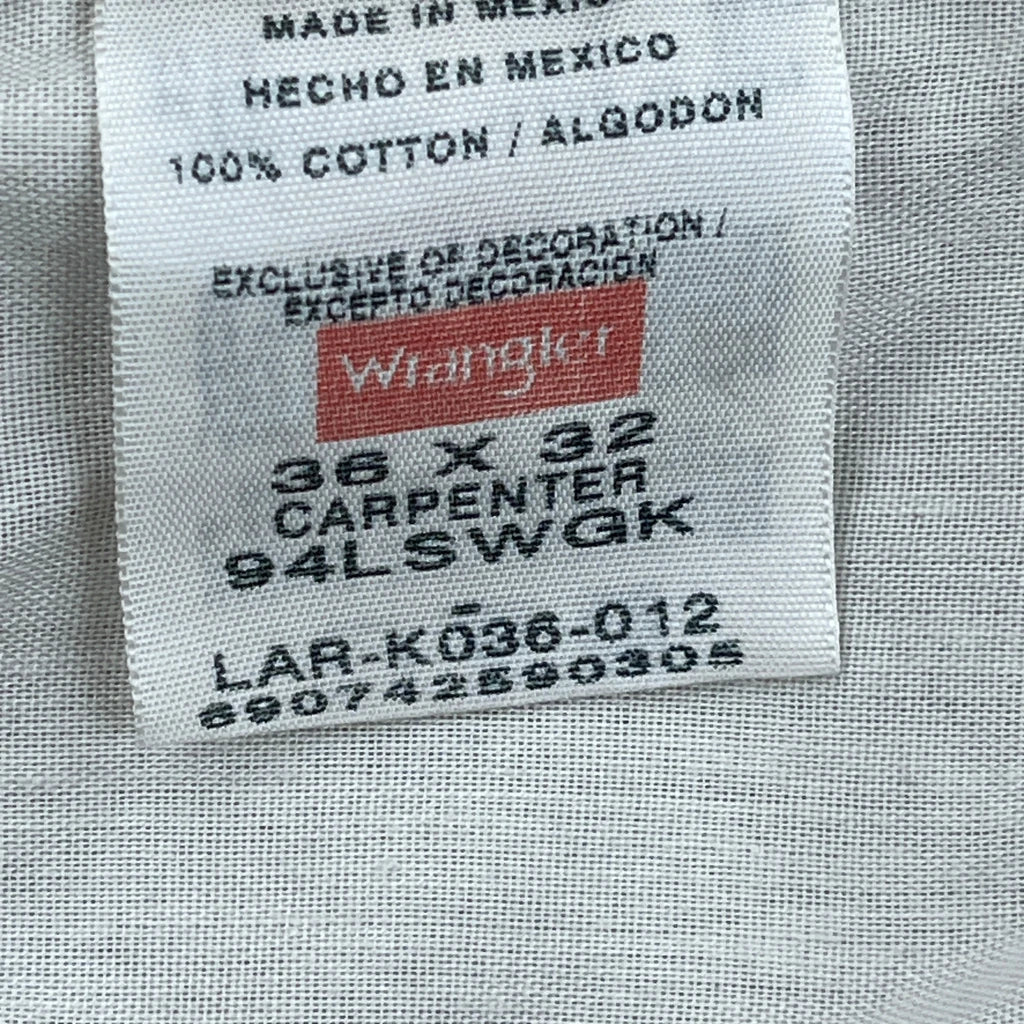 Wrangler Carpenter Trousers, fit a 34″ Waist and 32″ inseam.