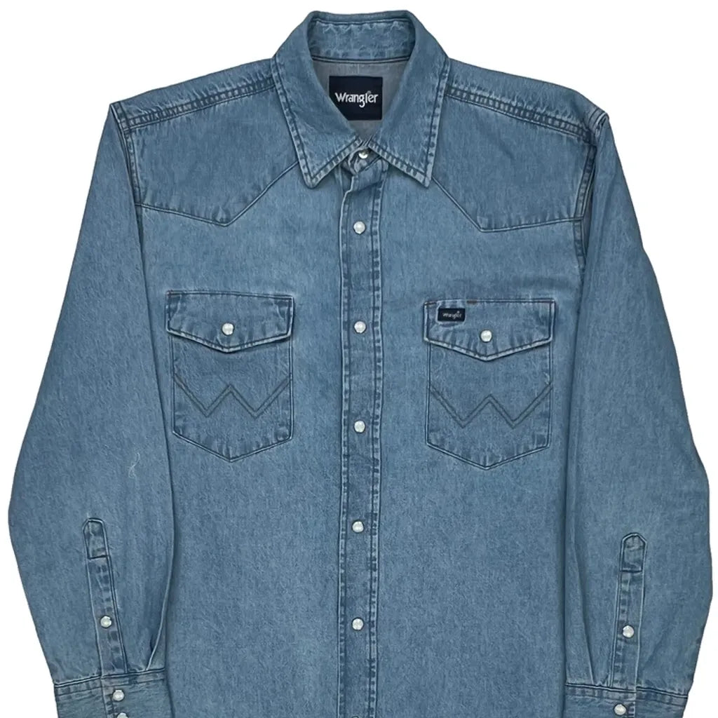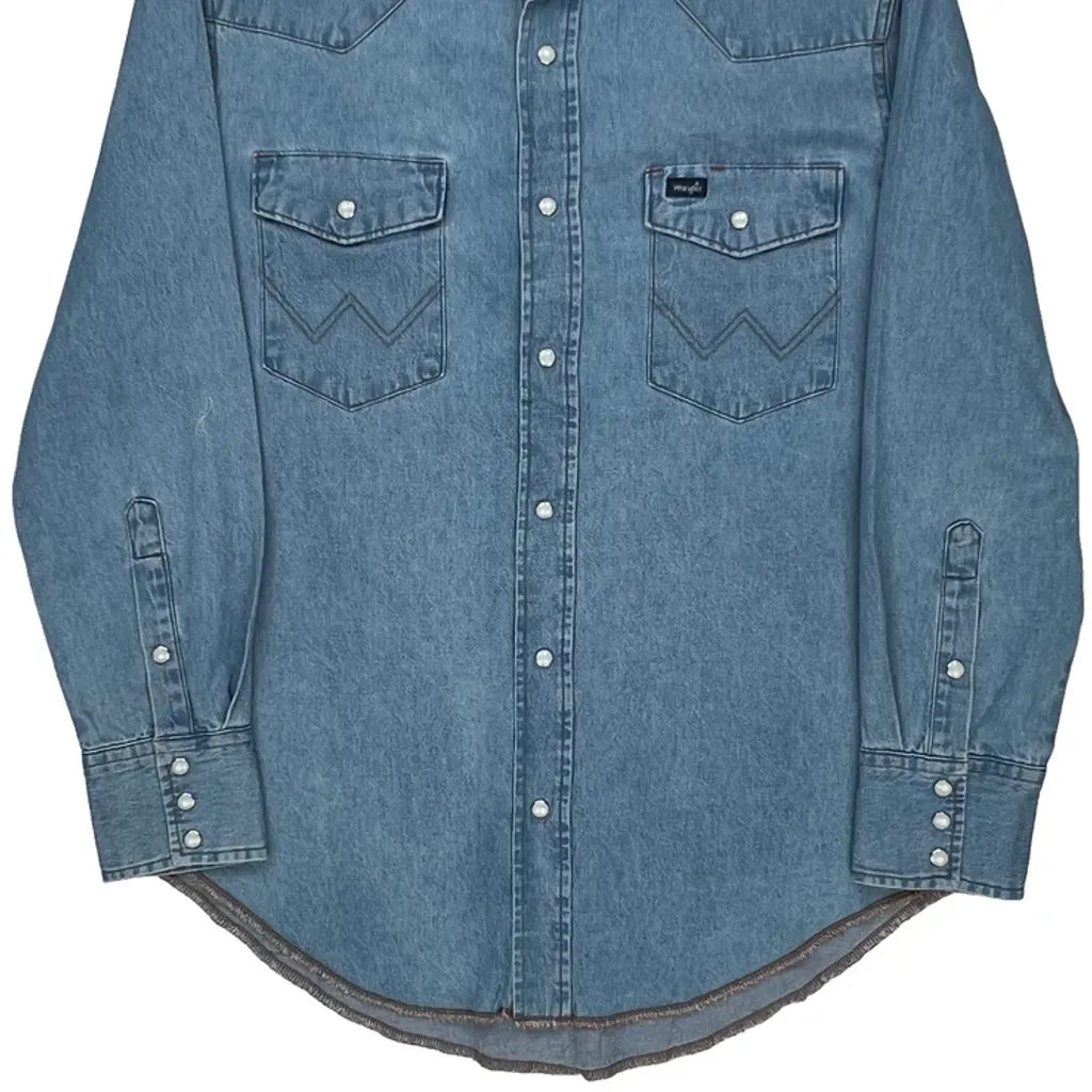 Wrangler Denim Shirt - Large Blue Denim