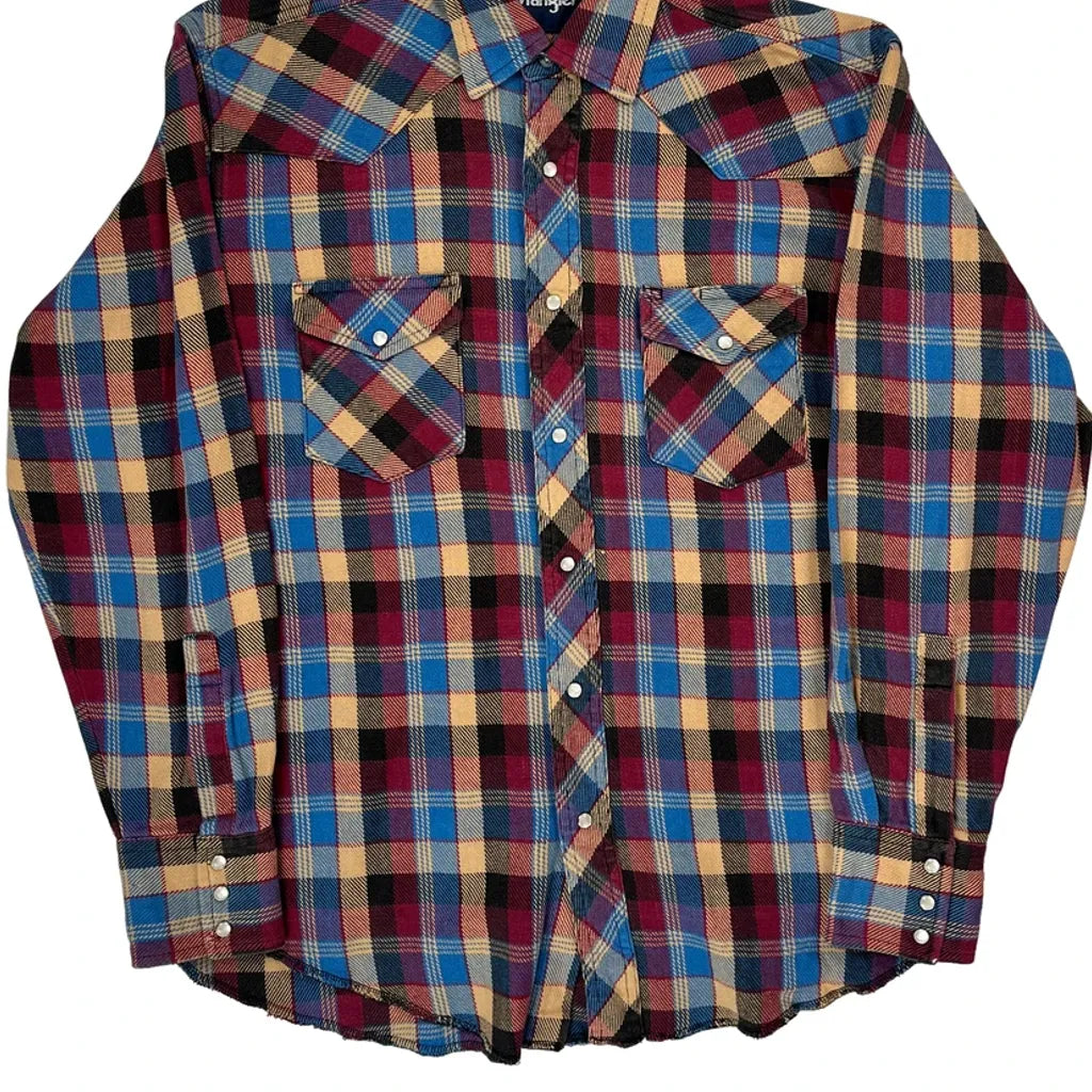Wrangler Flannel Shirt With Checked Pattern, No Visible Marks Or Faults.