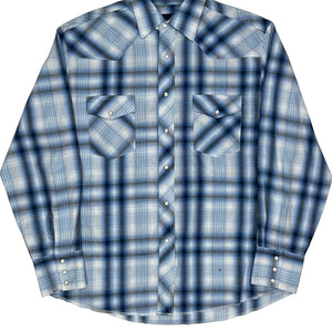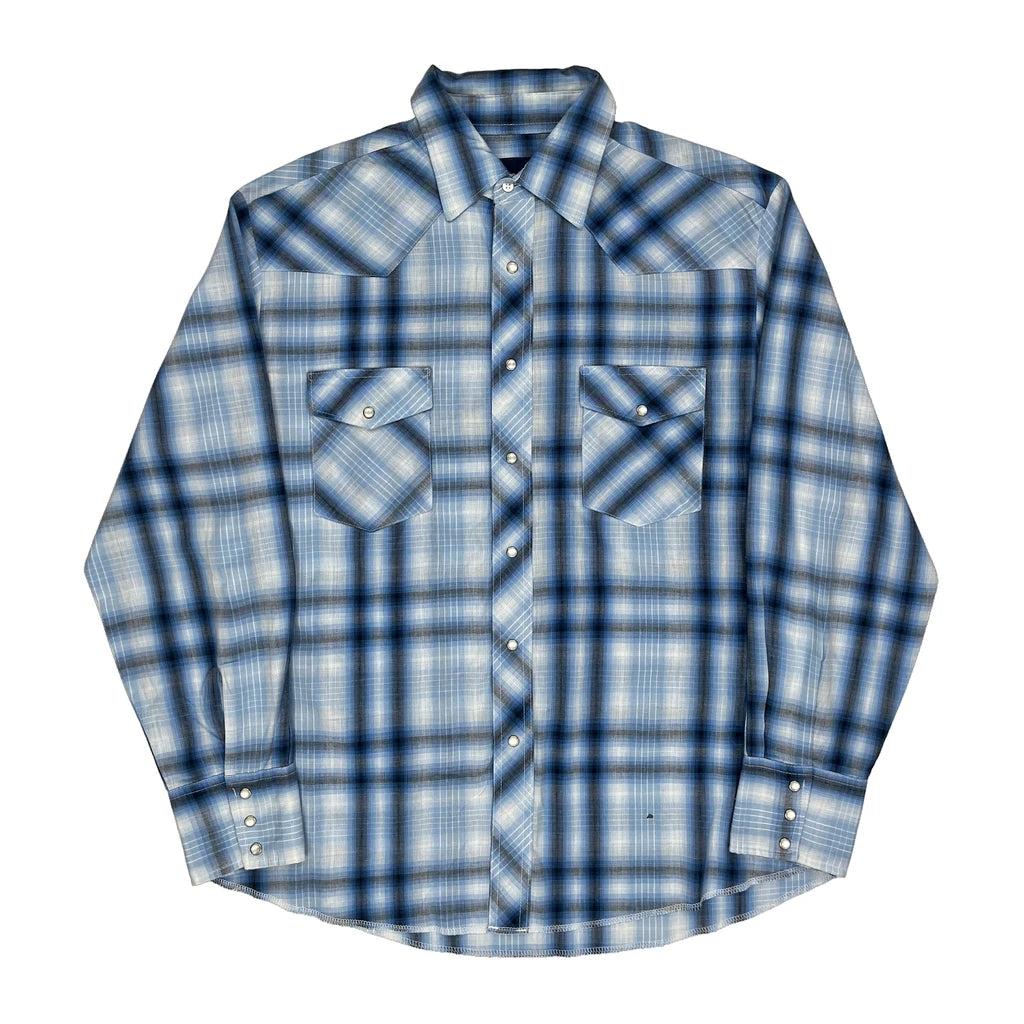 Wrangler Checked Shirt - Large Blue Cotton Blend