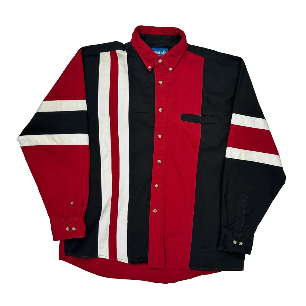 Wrangler Western Shirt With Bold Stripes And Color Block Design.