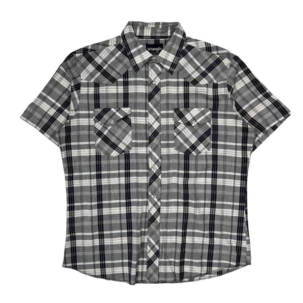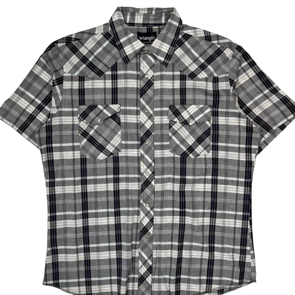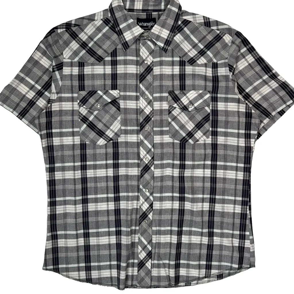 Wrangler Checked Short Sleeve Shirt - Large Black & White Cotton