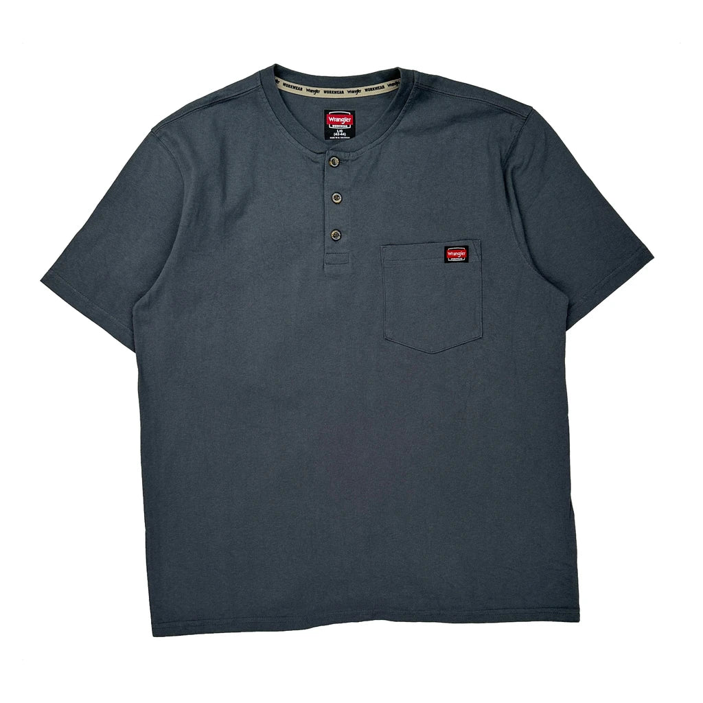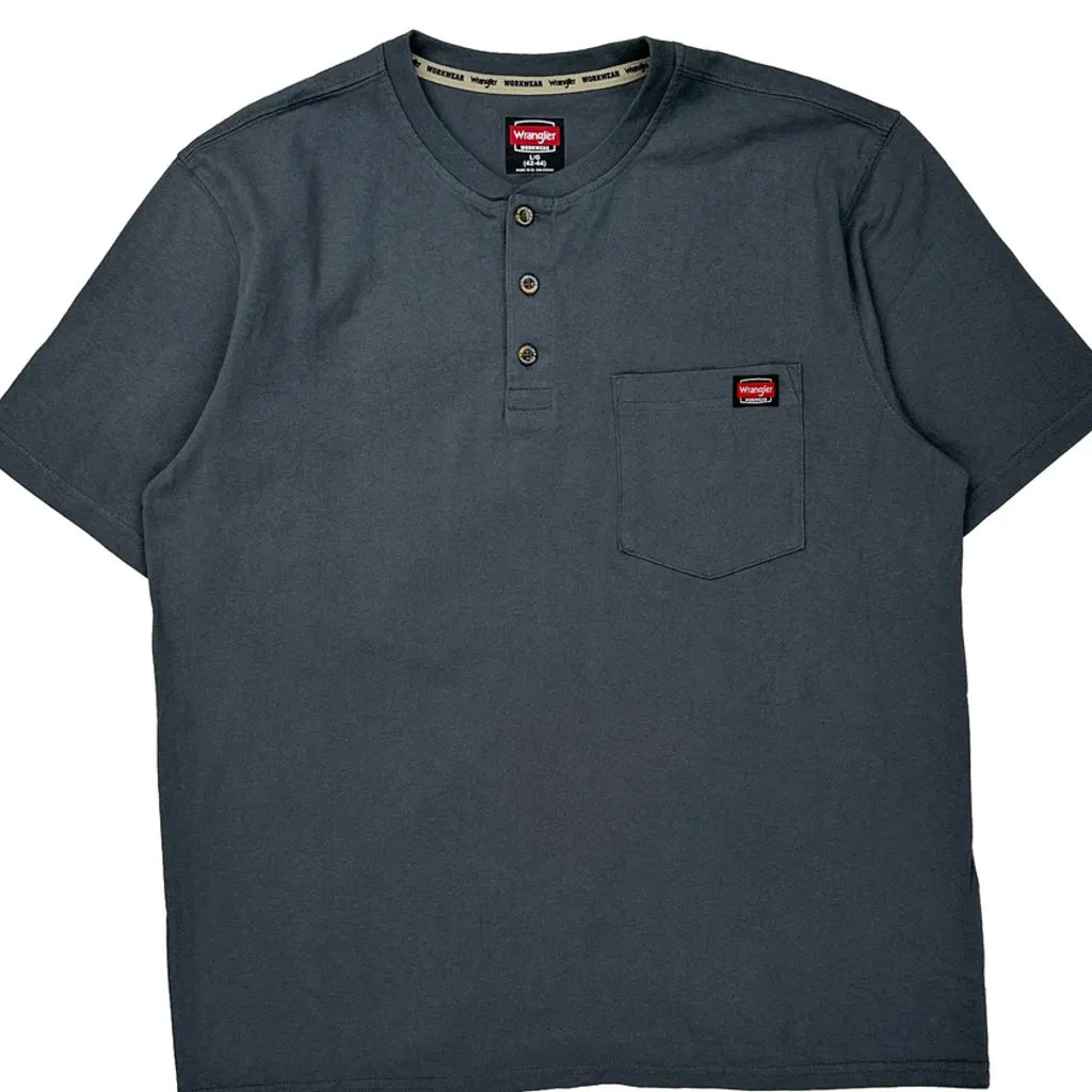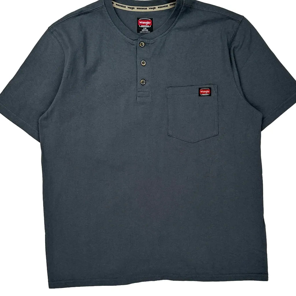 Wrangler Henley T-Shirt - Large Grey Cotton